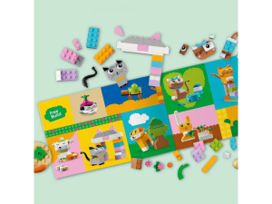 Der Bausatz enthält 450 LEGO-Steine, darunter spezielle Teile mit Augen und Mündern sowie eine ausführliche Bauanleitung. Kinder bauen ein Modell eines Hundes mit Knochen, einer Katze auf einem Kratzbaum, eines Hamsters mit einem Apfel, eines Kaninchens mit einer Karotte und eines Vogels auf einer Stange. Mit Designs mit alternativen Farben, Formen und Funktionen können Kinder versuchen, Haustiere in völlig neue Formen zu verwandeln. Das Set hilft dabei, die kreativen Fähigkeiten kleiner Baumeister zu entwickeln, die versuchen, ihre eigenen Ideen zusammenzustellen. Im Lieferumfang ist eine Anleitung mit 10 Bautipps enthalten, die Sie zum kreativen Schaffen nach Ihren eigenen Vorstellungen anregt.