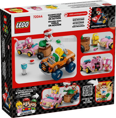 Füge eine LEGO® Mario™, LEGO® Luigi™ oder LEGO® Peach™ Figur (aus den Sets 71439, 71440, 71441 oder 72043 – separat erhältlich) hinzu und erlebe interaktives Spielen. Sammle zufällige Gegenstände aus der Item-Box und aktiviere während der Fahrt die Sound- und visuellen Effekte von Mario Kart.