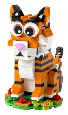 Celebrate the 2022 Lunar New Year with this adorable brick-built tiger, which has big eyes and attentive ears and sits on a platform of grass and flower elements.