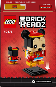 Disney's most famous character, Mickey Mouse, is ready to celebrate the Lunar New Year in his traditional Chinese suit. The elaborate buildable model of Mickey Mouse from the LEGO® I Disney BrickHeadz™ series has a decorated torso and includes an envelope and a lamp. The colorful BrickHeadz (40673) Mickey Mouse at the Spring Festival figure has a solid build base and will delight any builder aged 10 and up, and is great for play and display.