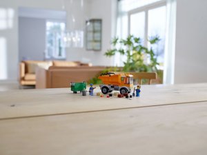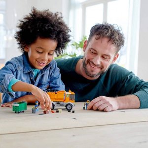 The set features an easy-to-build garbage truck with an opening cab for 2 minifigures, a tip-up container and a starter mat to help your child quickly and easily enter the busy world of LEGO® City.