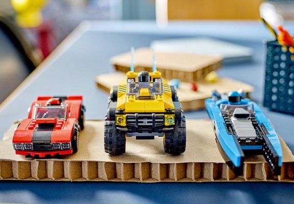 Let LEGO® 2KDRIVE video game fans and little racers experience the thrill of high-speed racing with the LEGO City (60395) All-Out Racer Set. For ages 6 and up, this toy comes with a red sports car, a yellow SUV and a blue speedboat. With the possibility of changing the front and rear modules, it offers children a creative space to combine and create their own racing machines. Whether they're replaying 2KDRIVE's action-adventure or creating their own epic races, this kit will keep them entertained.