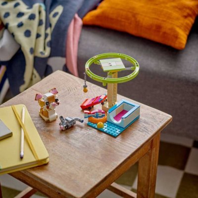 LEGO® Creator 3 in 1 sets allow children to build 3 different small animal models from one set of identical bricks. He builds a house for the hamster, which he then converts into a cat play corner with a merry-go-round and a skateboard or a dog house with a ramp, which the dog can slide down to great toys to play with.