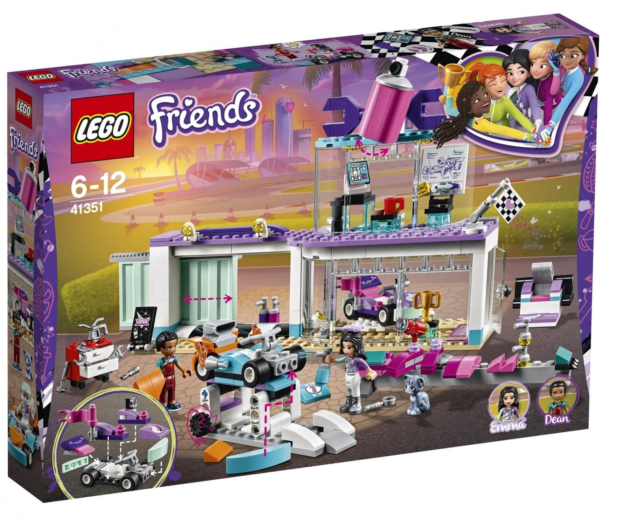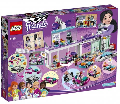 The 41351 LEGO® Friends Tuning Workshop set includes a showroom with sliding doors and a rotating floor, a lifting platform, opening tool drawers and an office. This LEGO Friends set also includes 2 go-karts and lots of parts to customize them in a variety of ways. A starting device is also included, which will help you start with ready-made go-karts for a big race. There are also 2 mini-dolls and a cat figure.