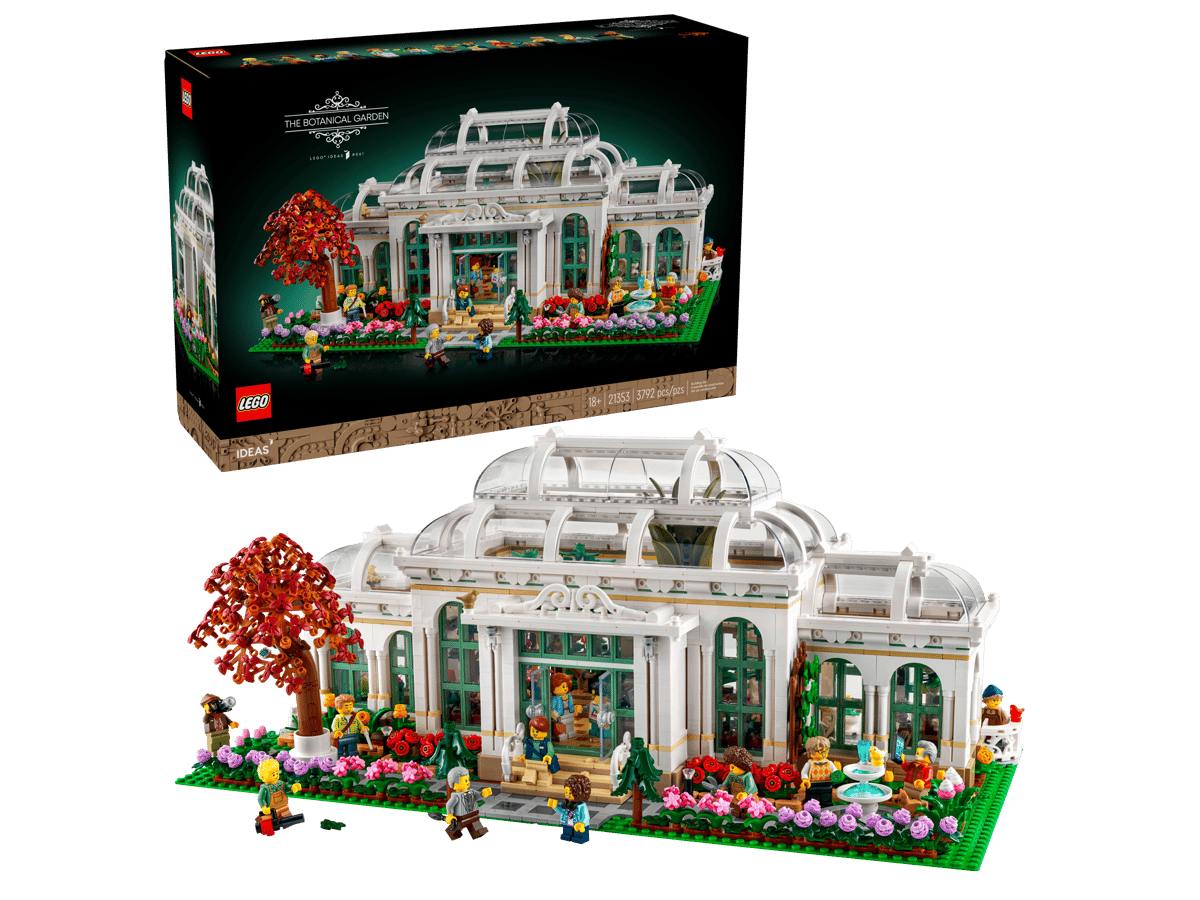 Nature-themed gift for adults – Nurture your passion for nature with the LEGO® Ideas Botanical Garden, featuring a Victorian-style brick greenhouse and outdoor garden with over 35 plant species