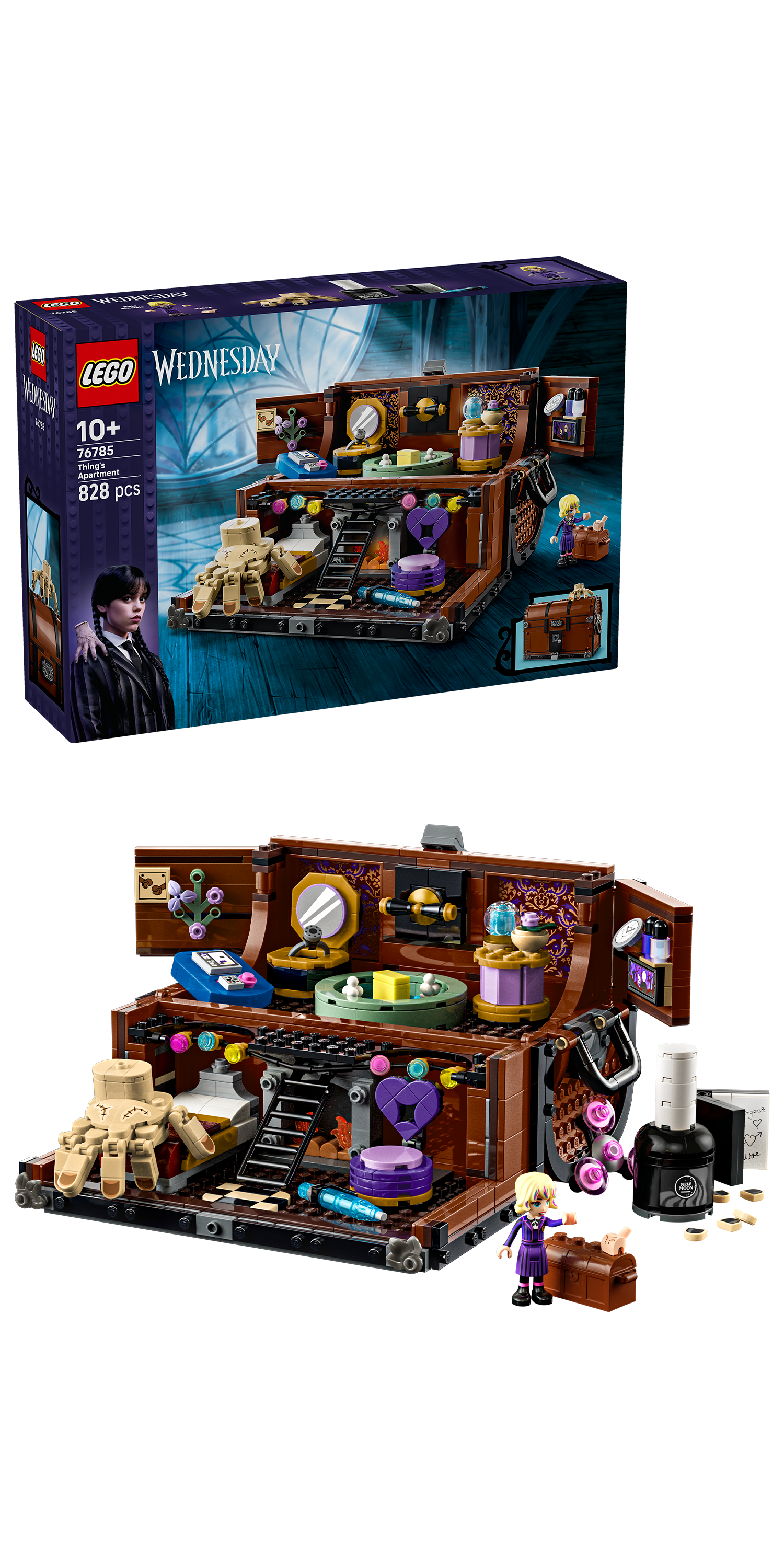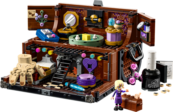 LEGO® Wednesday – This set features a suitcase-style “apartment” with a unique living space, fun details and lots of accessories (including some that will surprise you!) and features a stunning interior decoration