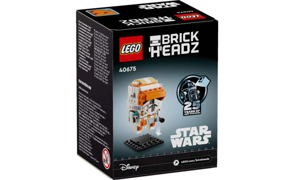 • Velitel klonů Cody™ ve stylu LEGO® BrickHeadz™ – Fanoušci si hrdě vystaví sestavitelnou figurku LEGO velitele Codyho a připomenou si slavnou scénu z filmu Star Wars: Pomsta Sithů