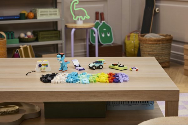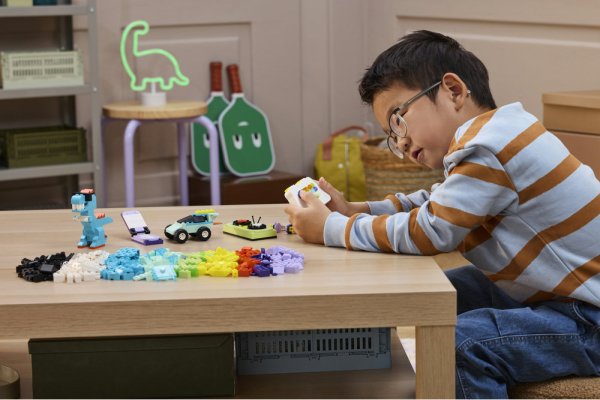 Díky spoustě barevných kostek, očím, kolečkům a pantům je tato stavebnice přímo stvořená k nekonečnému hraní. Mezi sestavitelnými modely najdete herní ovladač, dinosaura s brýlemi, otevírací mobilní telefon, skateboard, monster truck a DJskou sadu se sluchátky. Modely lze kombinovat a přizpůsobovat a užít si tak ještě více zábavy – můžete třeba nasadit sluchátka dinosaurovi a dinosaura postavit na skateboard.