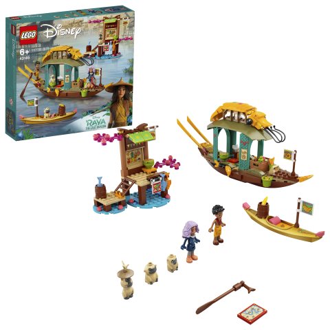 Stavebnice Boun a loď (43185) od LEGO® ǀ Disney potěší všechny fanoušky filmového trháku Raya a drak. Tato skvělá sada obsahuje velkou loď a dva menší modely, které poslouží jako inspirace ke hraní. Součástí je tištěný návod na stavění a k dispozici jsou také digitální pokyny Instructions PLUS. S pomocí aplikace s LEGO návody se děti v průběhu procesu stavění stanou skutečnými mistry staviteli... to je přece boží!Tajemství úspěchu se ukrývá v detailechSada obsahuje propracovaný model zdobené lodi s barevnou plošinou, pádlem a padacími dveřmi. Dále nechybí přístaviště s malým trhem a spousta doplňků.Skvělý a jedinečný dárekTato sada se dvěma minipanenkami – Sisu a Bounem – čeká na to, až ožije v rukou dětské představivosti. Představuje skvělý dárek pro děti, které mají rády nové trendy, a podporuje kreativní dovednosti a hraní rolí při přehrávání filmových scén a vymýšlení vlastních příběhů.