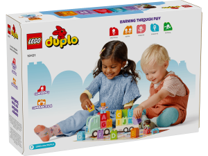 • Stavebnice, která děti naučí písmenka – Nasedněte do Náklaďáku s abecedou z řady LEGO® DUPLO® Město a připravte se na hraní plné zábavného učení abecedy pro malé stavitele od 2 let