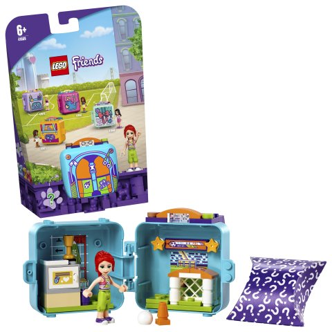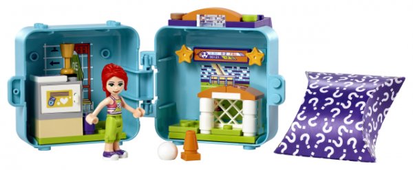 • Fotbalový boxík přináší spoustu kreativních prvků. Na děti čeká LEGO® Friends minipanenka Mia, figurka pejska v náhodné barvě, sestavitelná branka a šatna, a navíc výsledková tabule, míč a pohár.