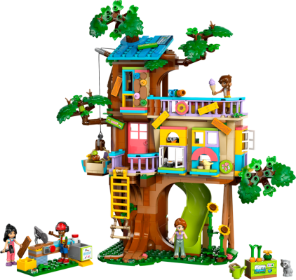 Dům přátelství na stromě obsahuje 4 minipanenky a figurky psa a mývala. Je to skvělý dárek pro děti, které milují zvířata.