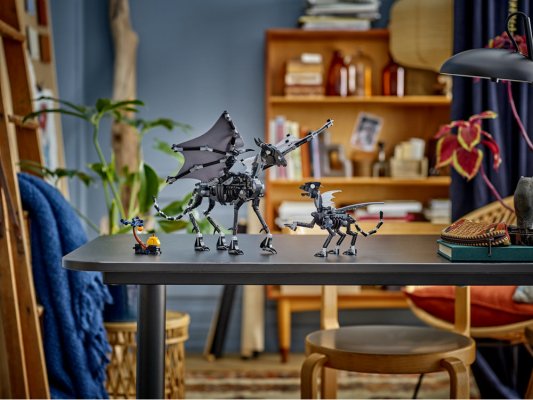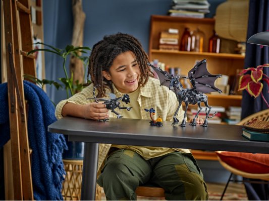 • Pohyblivé sběratelské figurky LEGO® Harry Potter™ – Figurky testrálů mají pohyblivé hlavy, křídla a nohy a dospělý testrál má velká skládací látková křídla