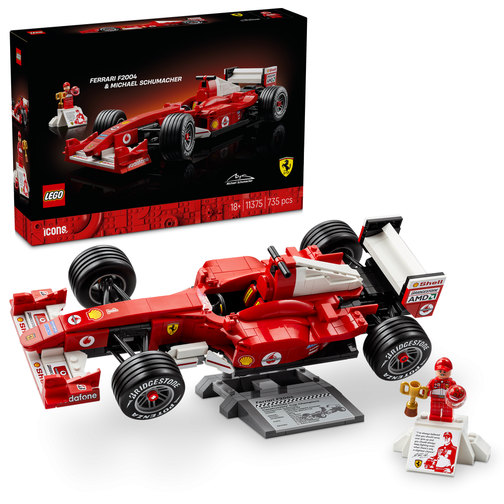 • SBĚRATELSKÁ STAVEBNICE VOZU F1 PRO DOSPĚLÉ – Oslavte legendu závodních okruhů se stavebnicí LEGO® Icons Ferrari F2004 a Michael Schumacher (11375) pro dospělé stavitele a sběratele