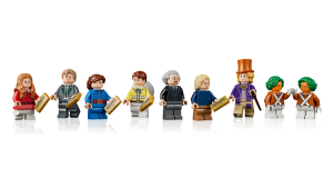 • 9 minifigurek LEGO® – Připomeňte si nezapomenutelné scény s minifigurkami Willyho Wonky, Karlíka Bucketa, dědečka Joea, Augusta Gdoule, Mikyho Telekuka, 2 minifigurek Umpa Lumpů, Veruky Saltini a Fialky Garderóbové