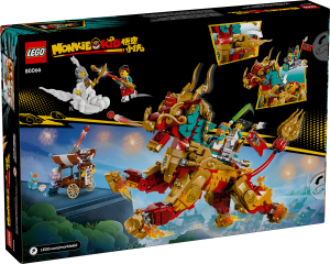 • Zábavná stavebnice – Tato stavebnice LEGO® Monkie Kid™ obsahuje pohyblivou figurku dračího koně ve zlaté zbroji, 5 minifigurek, vozík s jídlem, „vznášející se“ mrak, sedlo, které lze přeměnit na 2místný letoun, a spoustu dalšího