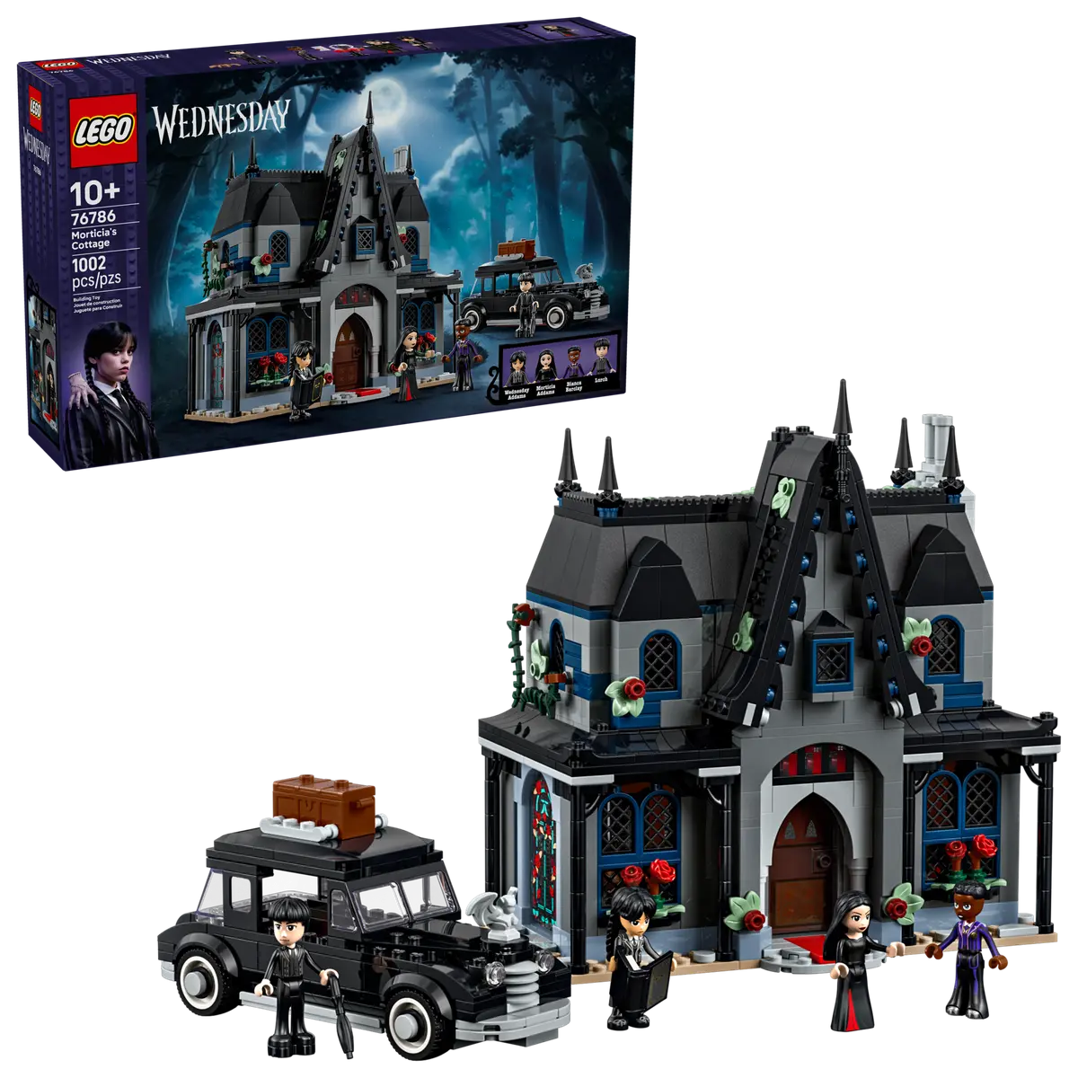 • 4 minipanenky LEGO® Wednesday – Stavebnice obsahuje minipanenky Wednesday Addamsové, Morticie Addamsové, Biancy Barclayové a Lurche a spoustu doplňků na vymýšlení příběhů