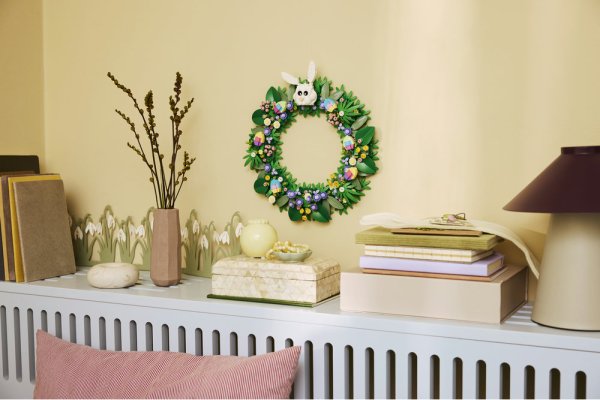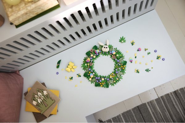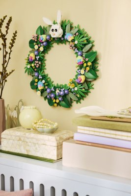 OZDOBNÝ VENEC NA ZAVESENIE – Táto veľkonočná stavebnica LEGO® obsahuje držiak, ktorým je možné veniec zo zelene pripevniť na vstupné dvere alebo stenu, alebo ho môžete použiť ako zábavnú dekoráciu na stôl