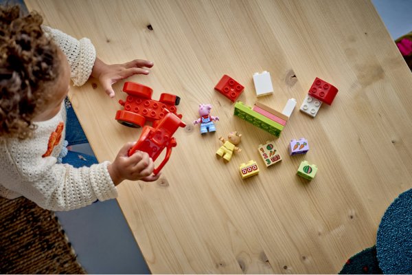 HRAČKA PRASIATKO PEPPA – Batoľatá od 2 rokov sa so stavebnicou LEGO® DUPLO® Prasiatko Peppa Traktor a tržnica (10468) môžu pripomenúť scény zo svojho obľúbeného seriálu a hrať na prevádzkovanie farmárskeho obchodu